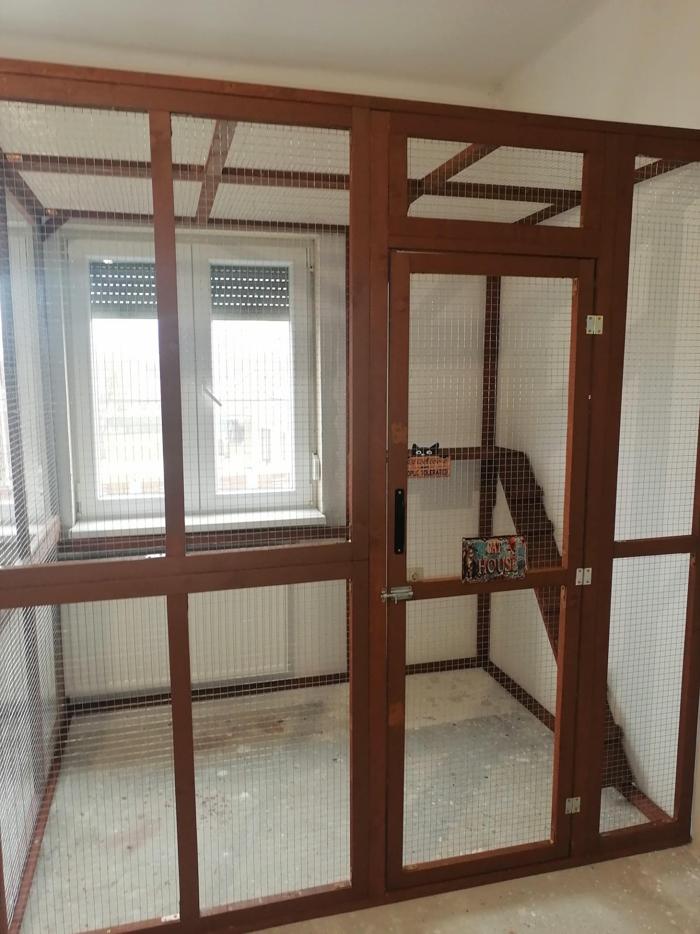 Ha cica polcokat tennél a falra, de nem akarod hogy fúrkálva legyen a fal... Így a kennel belső oldalaira is lehet polcokat tenni...